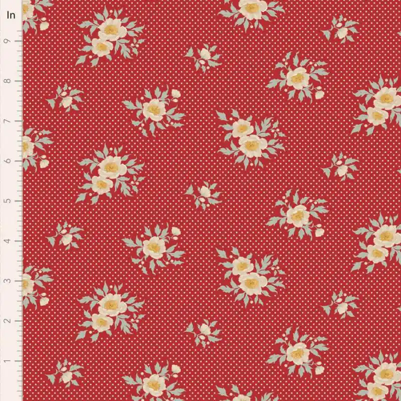 Compra Oggi Stesso Tilda Merry Little Christmas, Joy Red, tessuto con fiori e pois su fondo rosso