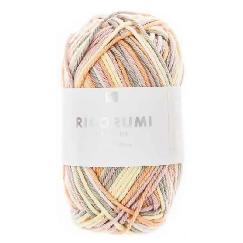 Questo filato variopinto è perfetto da combinare con altri filati della collezione Ricorumi. Tutti presentano lo spessore DK, consigliato per ferri da 3 – 4 mm.