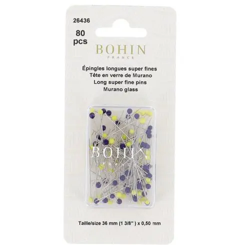Le teste di vetro colorate permettono di trovare rapidamente gli spilli nel tessuto dopo la cucitura, sono molto resistenti e possono sopportare il passaggio di un ferro da stiro.