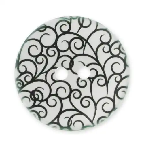 Consegna Rapida Bouton décoré 28 mm volutes Noir/Blanc x1