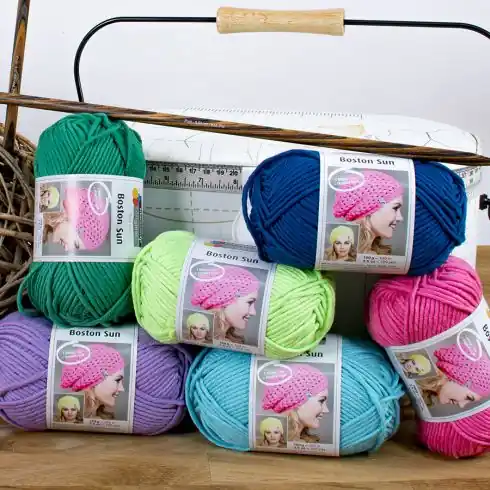 Boston Sun è un filato per maglieria e uncinetto fatto di cotone e acrilico. Piacevole da lavorare, questo filato è molto comodo da indossare. Ideale per i tuoi vari progetti: sciarpa, cappello, maglione…