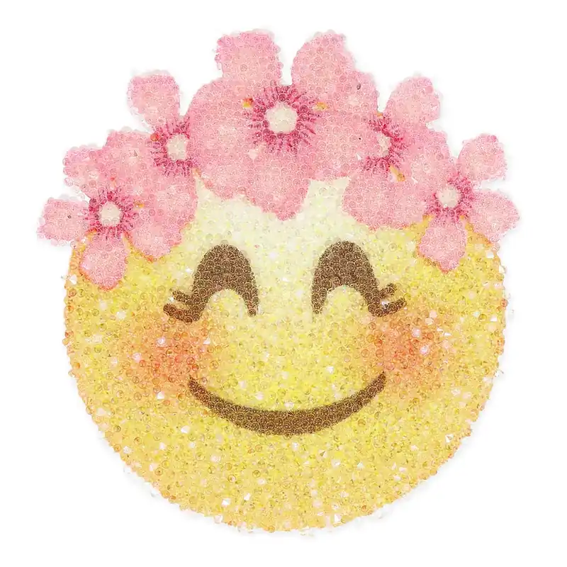 Ecusson top tendance forme Emotic ône fille avec une jolie couronne de fleurs.