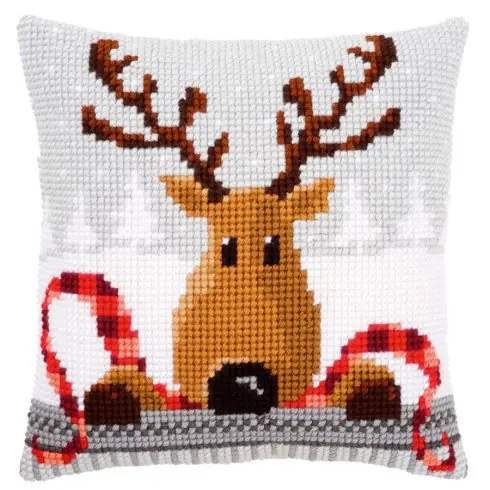 Di Tendenza Kit cuscino fori grossi – Cuscino da ricamare renne con sciarpa rossa – Vervaco