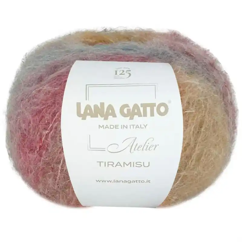 Lana Gatto Tiramisù è un filato unico che combina fibre nobili e naturali per offrire morbidezza, leggerezza e una finitura spettacolare. La sua miscela di lana vergine, cotone, mohair e alpaca risulta in un filato soffice, morbido e molto piacevole al tatto, perfetto per capi invernali caldi e confortevoli.