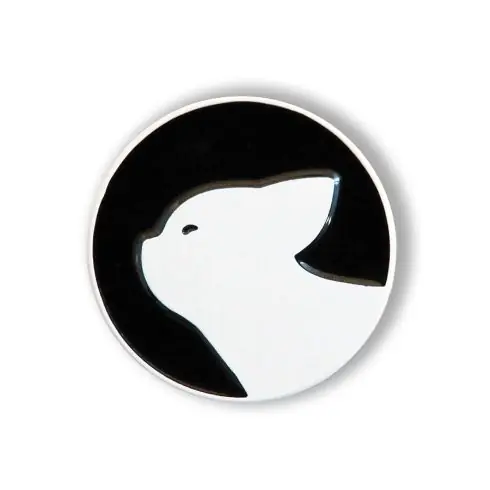 Porta aghi magnetico in metallo nei colori del marchio Letistich, bianco e nero, con motivo a gatto.