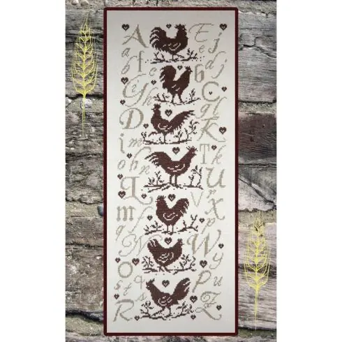 “ABC del pollaio” può essere ricamato con 2 fili dell’ago su 2 fili di trama su una tela Étamine Murano 12,6 fili grezza (264) vers la toile Murano.