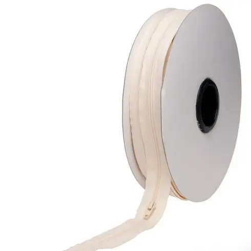 Cerniera bianchissima al metro. Catena continua in nylon 3,8 mm.