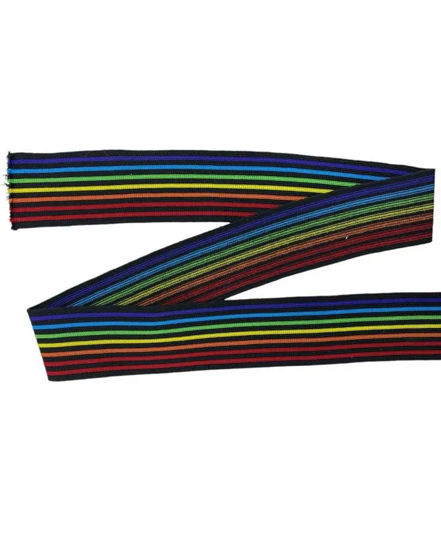 Direttamente Dal Produttore Passamaneria Nastro Semielastico Rigato Multicolor Base Nero Alto 4 Cm