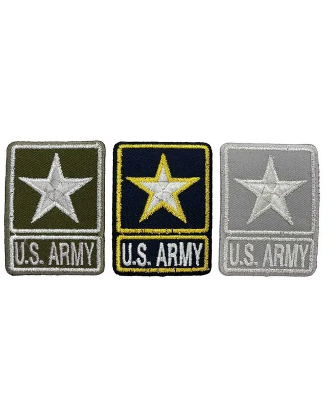 Economico Applicazione Termoadesiva Patch Tessuto Ricamo Lurex Stella Scritta US ARMY 6×4,5 Cm