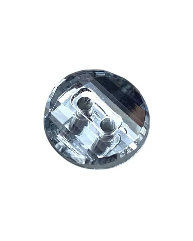 Un piccolo dettaglio luminoso per camicette, abiti da cerimonia, moda bimbo e decorazioni craft. Realizzato in plastica trasparente effetto cristallo, con superficie sfaccettata e due fori centrali per cucitura. Il suo design compatto e brillante lo rende perfetto per aggiungere luce anche ai capi più delicati.