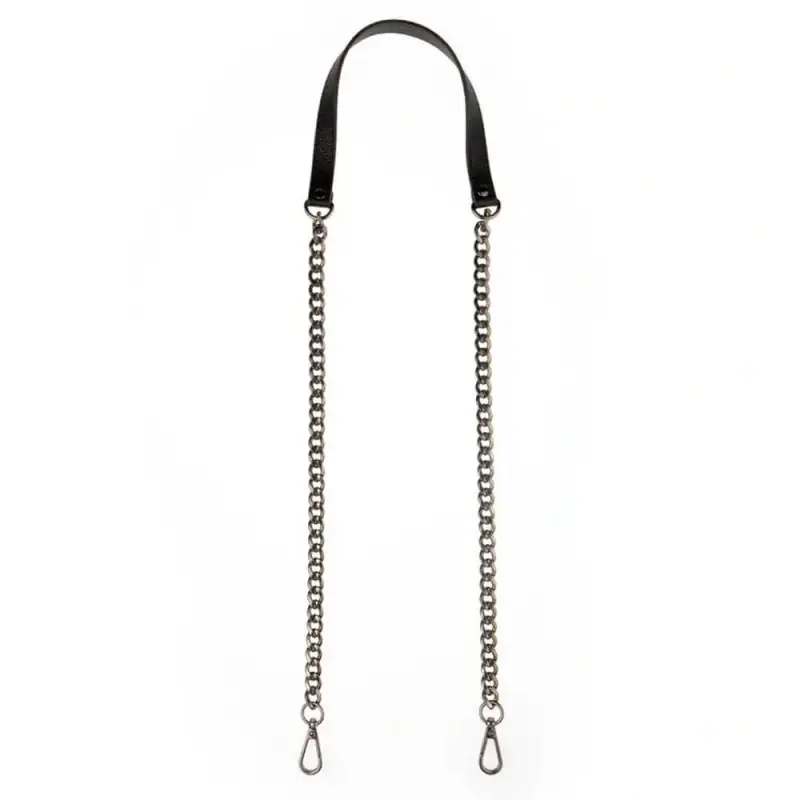 - Catena metallica lucida con sezione in ecopelle nera.