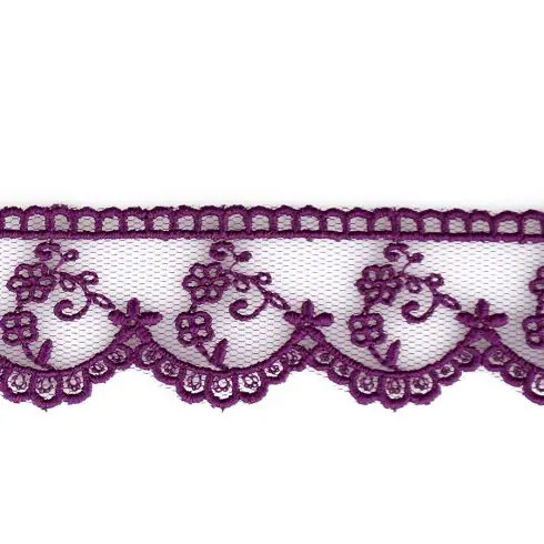 Pizzo in cotone 100% color prugna, largo 3 cm, venduto al metro.