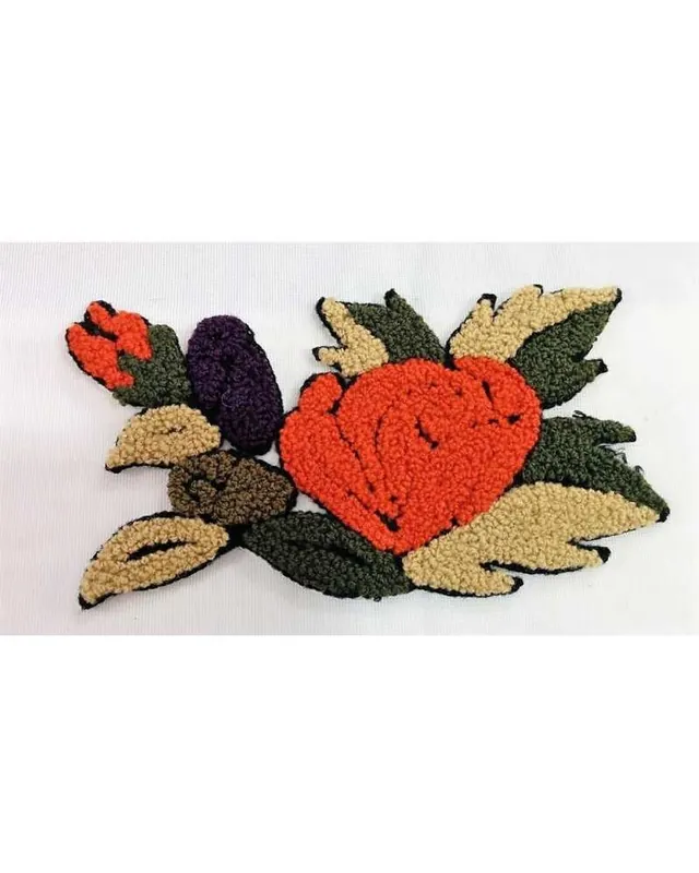 Esclusivo Applicazione termoadesiva patch fiore e foglia ricamato in lana cm 15×8