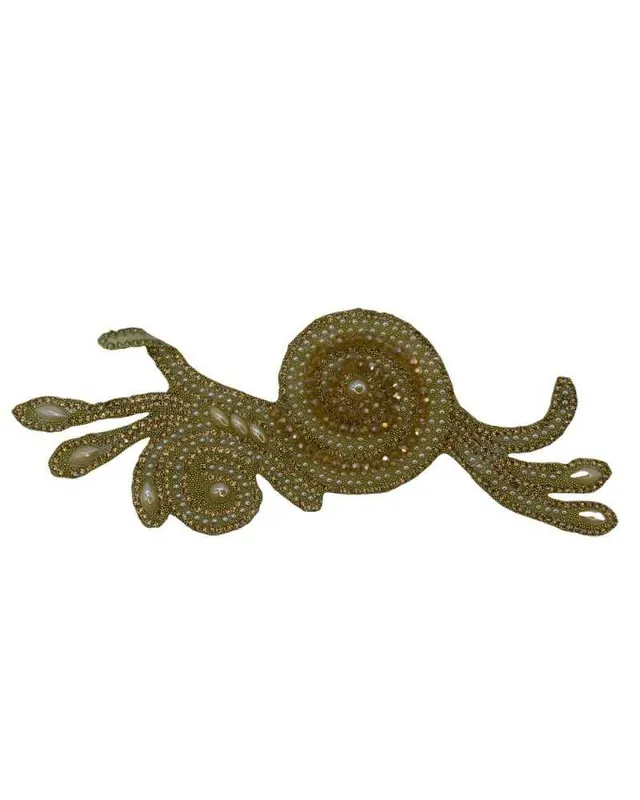 Home / MERCERIA E CUCITO / Esclusivo Applicazione Termoadesiva Patch Oro Lurex Perline 18×7 Cm