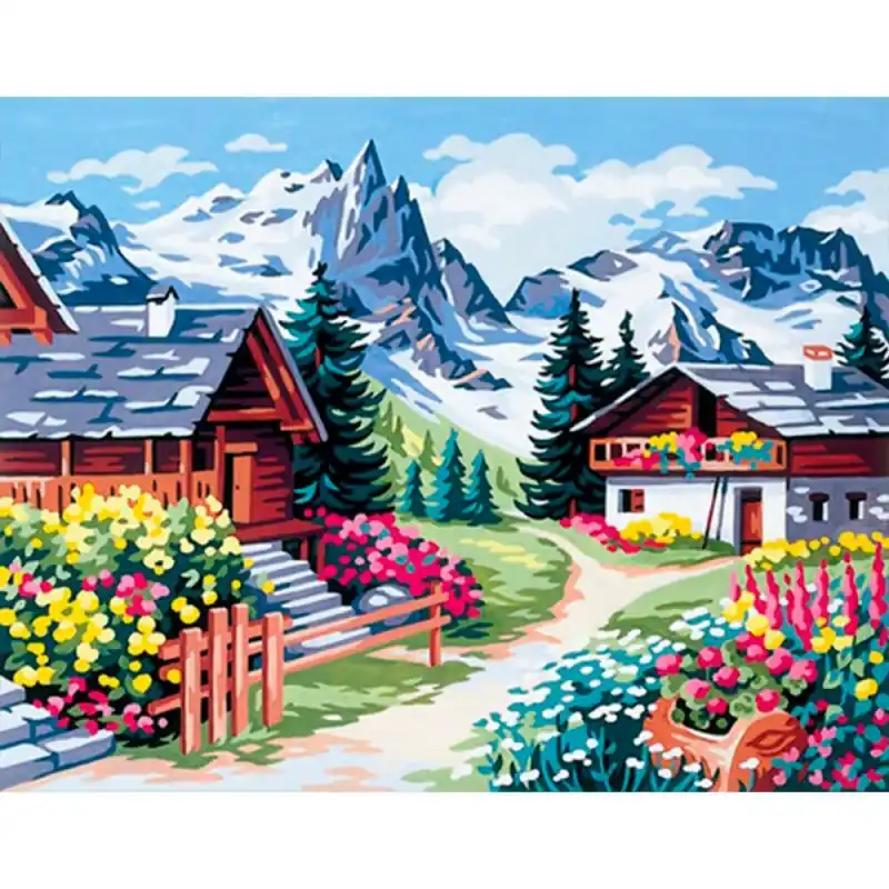 Il Canovaccio – Villaggio Alpino di Royal Paris rappresenta una scena montana idilliaca, con accoglienti case alpine circondate da fiori, sentieri e uno spettacolare paesaggio di vette innevate sullo sfondo. Un design ricco di colori, profondità e tranquillità che trasmette la bellezza della vita in montagna e trasforma il ricamo in un’esperienza creativa e rilassante.