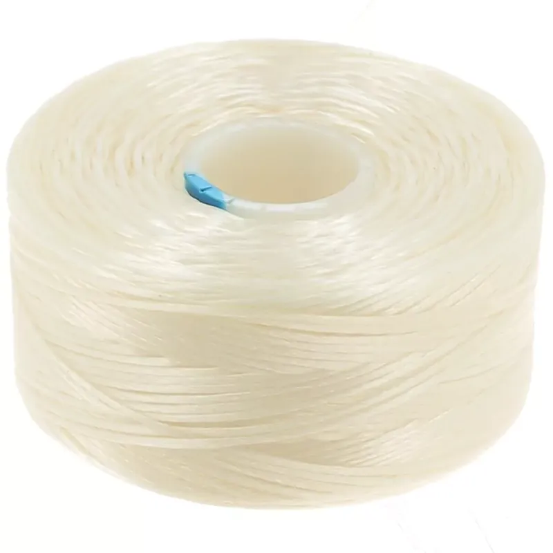 Fil de nylon souple polyfilament résistant, moins toutefois que la taille D. A utiliser avec les aiguilles taille 12. Recommandé pour de multiples passages dans les rocailles 15/0.