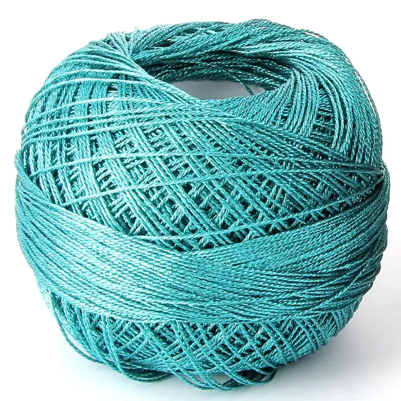 Ce fil Liz Metallic 6 brins comparable à la taille 20 de la gamme Lizbeth, couleur Turquoise Green (n°321) est en polyester recouvert d’un fil métallisé en polyéthylène téréphtalate (PET).