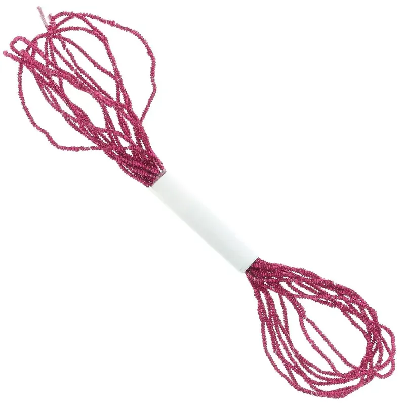 Ce fil métallisé est conçu avec une surface brillante et texturisée qui donne l’impression d’une chaîne de petites perles enfilées. Sa surface 3D réfléchit la lumière, comme les perles facettées, et crée un effet scintillant.