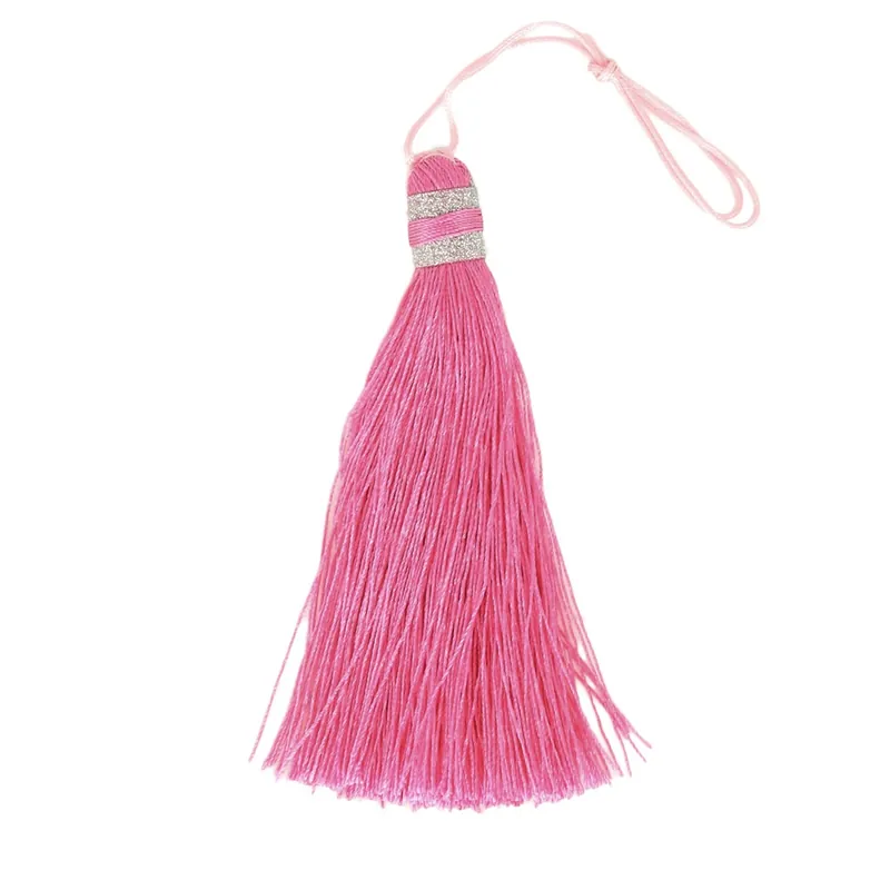 Grand Pompon textile 90 mm pour déco ou bijoux Rose/Argenté Solo Oggi