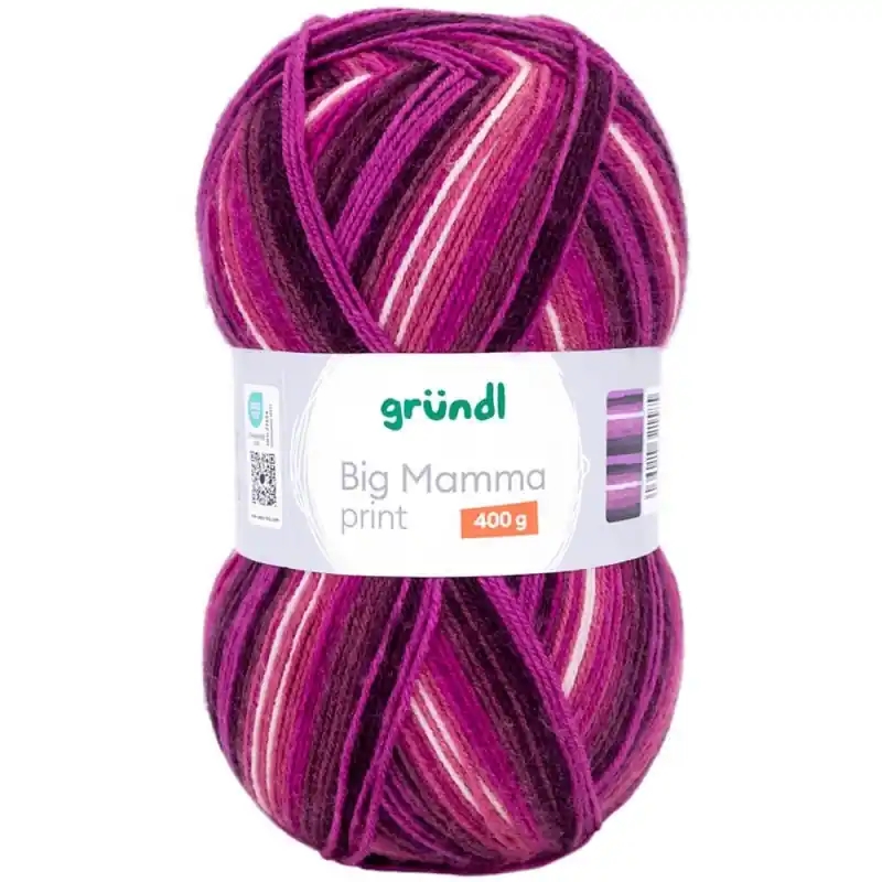 Gründl Big Mamma Print è un filato acrilico dalla texture lanosa, disponibile in gomitoli da 400 grammi. È ideale per realizzare capi e accessori comodi e caldi. Il suo tocco morbido e il calore lo rendono perfetto sia per adulti che per bambini. Inoltre, le sue combinazioni di colori creano stampe uniche, conferendo un design speciale ad ogni progetto lavorato a maglia.