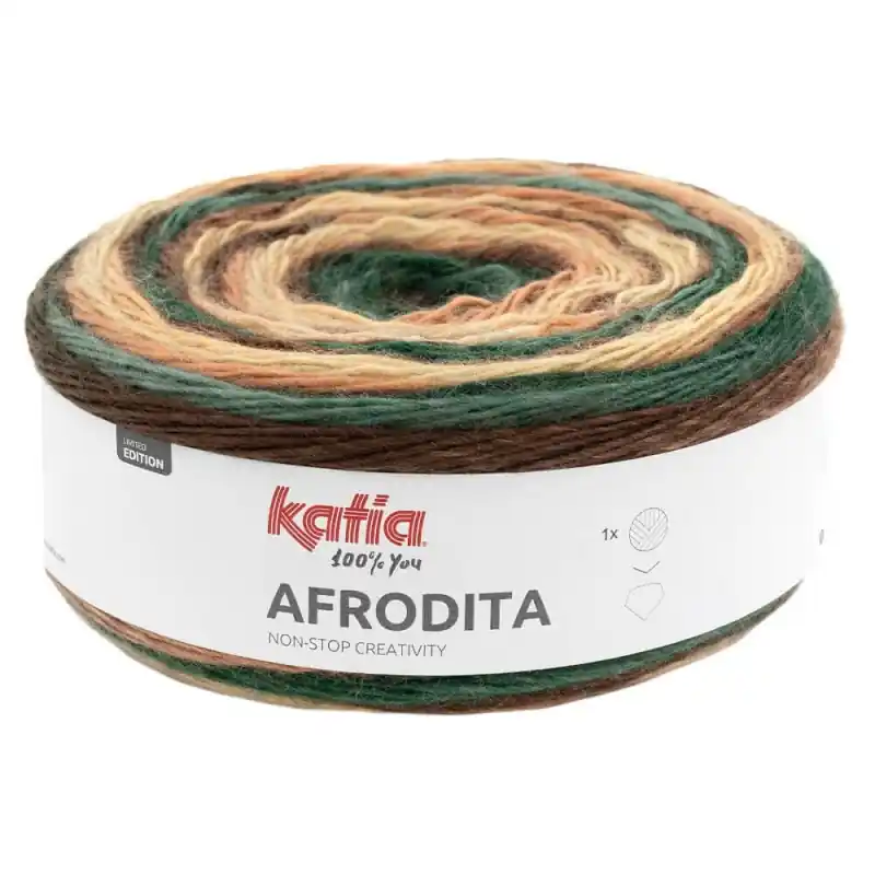 Katia Afrodita si distingue per la sua stampa multicolor unica e sorprendente. Presenta una cartella clori composta da otto spettacolari combinazioni di tonalità. Ogni gomitolo offre una combinazione cromatica che si fonde in modo armonioso e accattivante. Dalle transizioni sottili ai contrasti vibranti, questa lana ti consente di creare capi davvero accattivanti e vistosi.