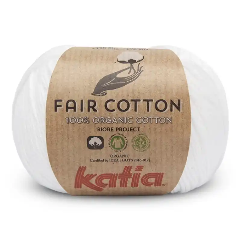 Fair Cotton 100% Organic di Katia è un filato di cotone organico perfetto per tutti i tipi di pelle, che rispetta l’ambiente e offre tessuti molto più morbidi e piacevoli da indossare e offrono anche una gran varietà di bellissime tonalità.