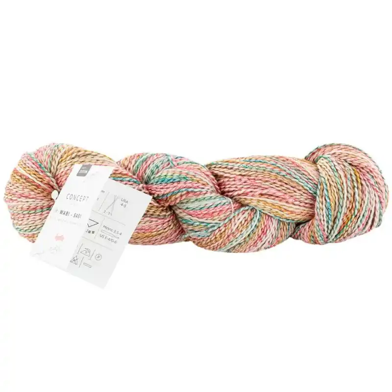 Katia Wabi-Sabi è un filato in edizione limitata della collezione Concept by Katia, composto dall’85% di cotone, 10% viscosa e 5% seta, che si distingue per la sua eleganza e originalità. La sua texture unica a forma di anello o onda e la stampa multicolore a ciclo lungo permettono di creare pezzi con texture e un effetto di righe di spessore variabile, conferendo dinamismo e stile a qualsiasi capo d’abbigliamento.
