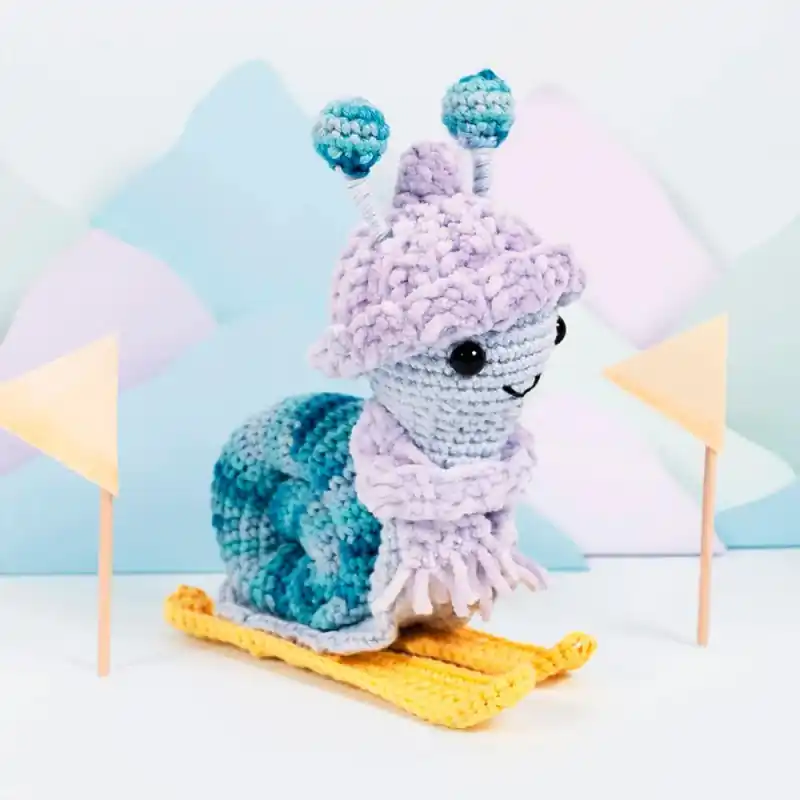 Il Kit Amigurumi Lumaca Sciatrice di DMC è un affascinante progetto di difficoltà intermedia che include tutto il necessario per realizzare all’uncinetto una simpatica lumaca pronta a scivolare sulla neve. Progettato da Joanna Hateley, questo personaggio unisce colori tenui e texture piacevoli, con un cappello e una sciarpa realizzati in Happy Chenille, conferendo un aspetto morbido e accogliente.