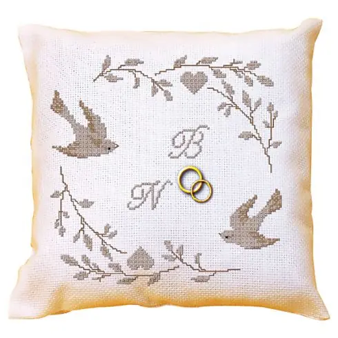 Kit cuscino da ricamo – Cuscino da ricamare matrimonio uccelli e cuore – La planète mauve Promozione Esclusiva