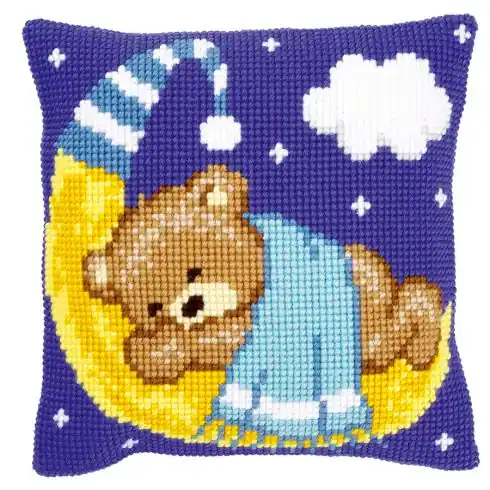 Kit cuscino fori grossi – Cuscino da ricamare orso sulla luna blu – Vervaco Nuovo Arrivo
