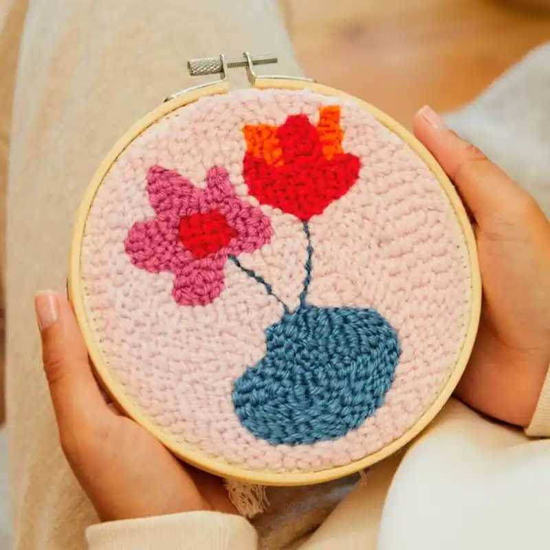 Il kit comprende tutto il necessario per iniziare a lavorare con l’ago di punch needle. Viene fornito con un ago da punch, lana acrilica, una matassa di filo Mouliné, un ago da cucito, un telaio da ricamo in legno di 15,7 cm di diametro, una tela di cotone 26×26 cm e un tessuto di cotone della stessa dimensione.