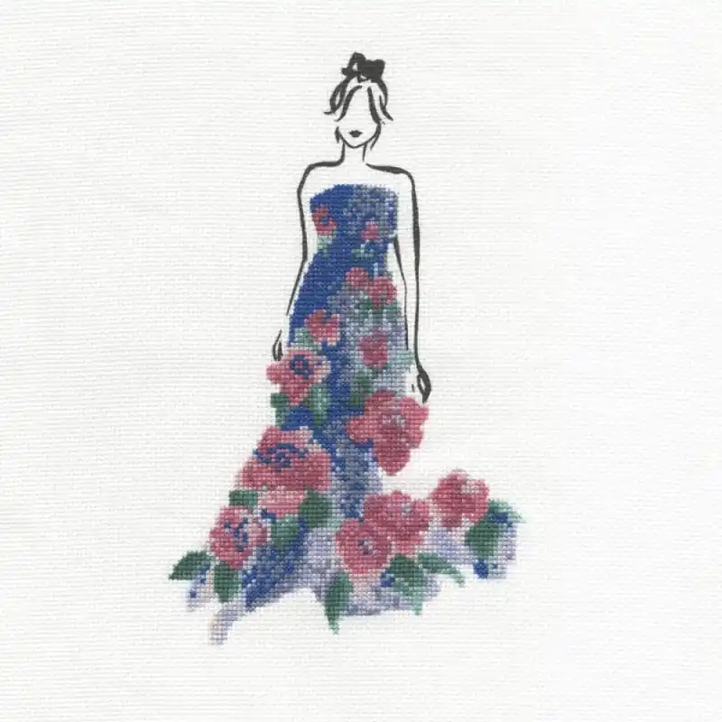 La siluetta della donna è stampata sulla tela Aida inclusa nel kit per dare forma al vestito di rose su essa. Otterrai un risultato incredibile e glamoroso!