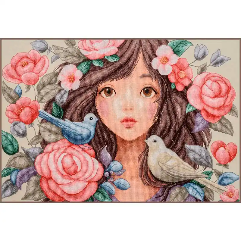Lasciati avvolgere dalla dolcezza e dalla delicatezza del Kit di Punto Croce She dove into Roses di Lanarte, un’incantevole scena che ritrae una giovane circondata da lussureggianti rose in tonalità rosa, accompagnata da due uccelli che aggiungono un tocco poetico e affascinante. La sua espressione serena e lo sguardo profondo rendono questo ricamo una vera e propria opera d’arte tessile.
