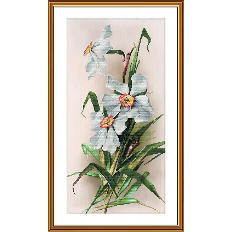 Cattura la delicatezza e la purezza dei narcisi con questo squisito Kit di Ricamo Daffodils di Nova Sloboda. Un design verticale stilizzato che rappresenta con grande realismo e dettaglio questi fiori iconici della primavera, ideali per progetti di ricamo decorativi, rilassanti e gratificanti.