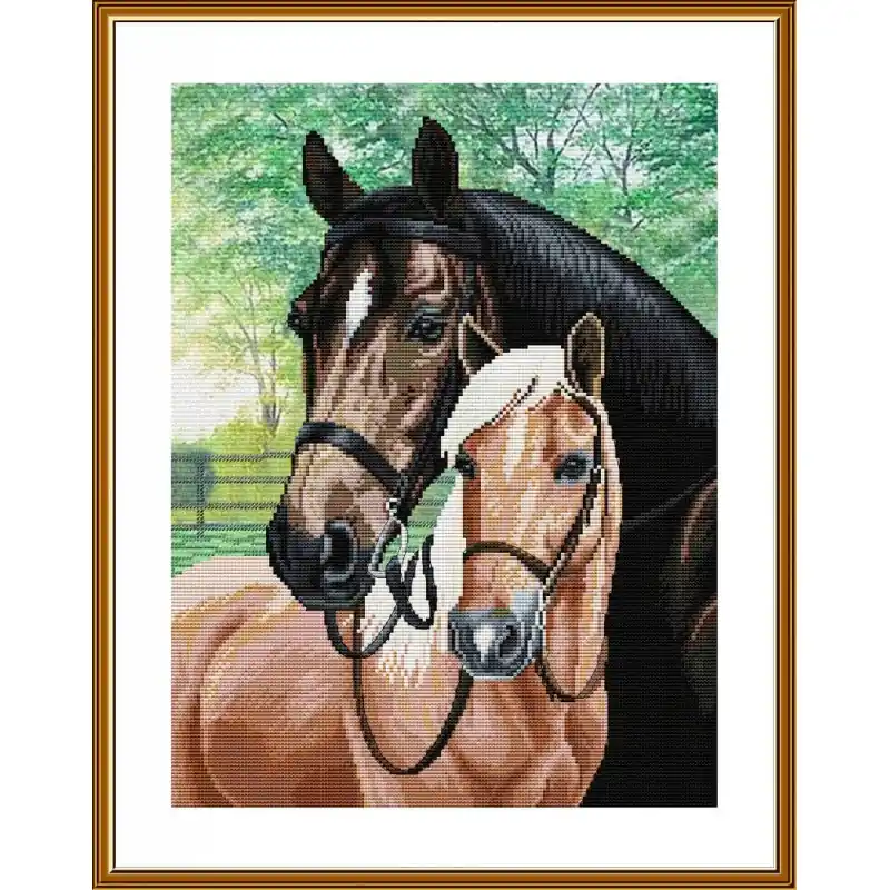 Con il Kit di Ricamo In Love di Nova Sloboda potrai celebrare la connessione e la nobiltà dei cavalli. In Love presenta due maestosi equini, uno scuro e l’altro chiaro, in una scena circondata da un paesaggio verde e tranquillo. Un design realistico ed elegante, ideale per gli amanti degli animali e della vita all’aria aperta.