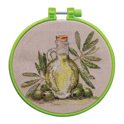 Kit per ricamo a punto croce con tamburo – Aromi di oliva – Abris Art Di Tendenza