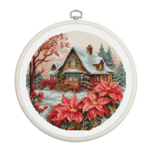 Kit per ricamo a punto croce con tamburo – La casetta nel bosco – Luca-S Esclusivo