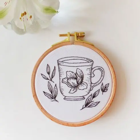 Kit per ricamo a tamburo – Tazza da tè floreale – Tamar Nahir Yanai Prezzo Conveniente