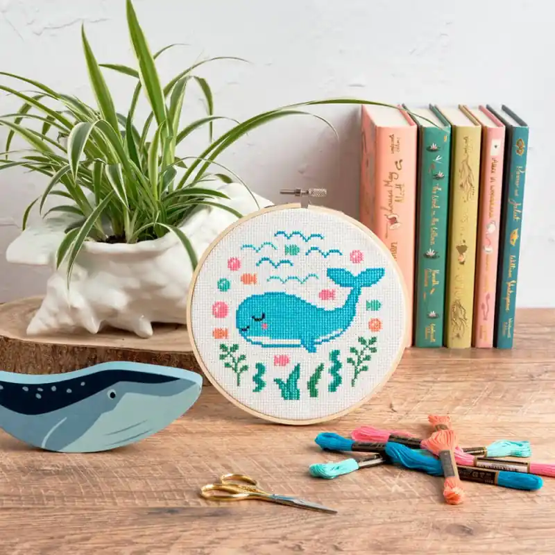 Nel Kit Punto Croce Balena di Anchor troverai tutto il necessario per ricamare una simpatica balena a punto croce. È molto semplice da realizzare, il che lo rende adatto ai principianti o ai bambini che vogliono avvicinarsi a questa tecnica di ricamo.