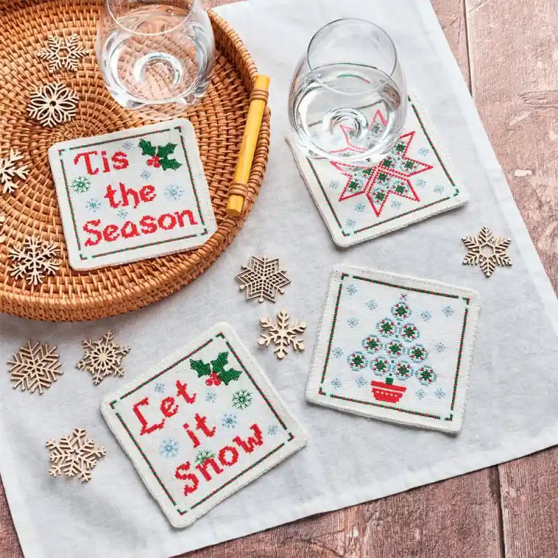 Caratteristiche del Kit Punto Croce Sottobicchieri per Natale di Anchor: