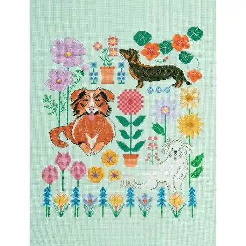 kit ricamo a punto croce – Cani in giardino – DMC Subito Disponibile