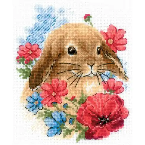 kit ricamo a punto croce – Coniglio nei fiori – Riolis Prezzo Scontato