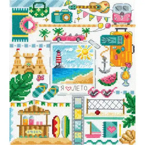 kit ricamo a punto croce – Cuscino da ricamare in spiaggia – MP Studia Professionale