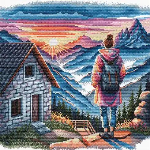 kit ricamo a punto croce – L’alba sulla montagna – Ava Di Tendenza