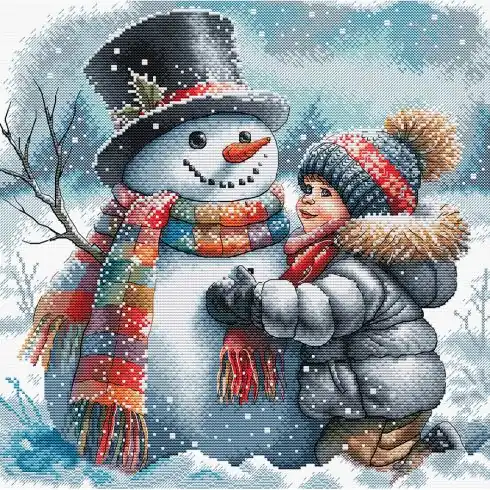 kit ricamo a punto croce – Un bambino e il suo amico della neve – Ava Affare