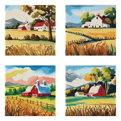 Kit ricamo diamante – 4 disegni “Vista sulla campagna – Diamond Dotz Affare