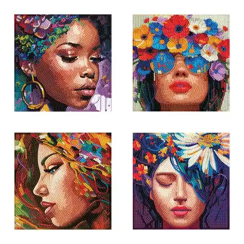 – 4 disegni (immagini) di ritratti di donne su tele diamantate adesive (totalmente)