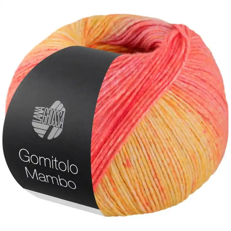 Lana Grossa Mambo è un filato 100% cotone biologico, morbido e soffice, con un bellissimo effetto mélange che crea strisce multicolori nei tuoi capi lavorati a maglia. La sua composizione naturale lo rende ideale per capi freschi e confortevoli, perfetti per la primavera e l’estate.