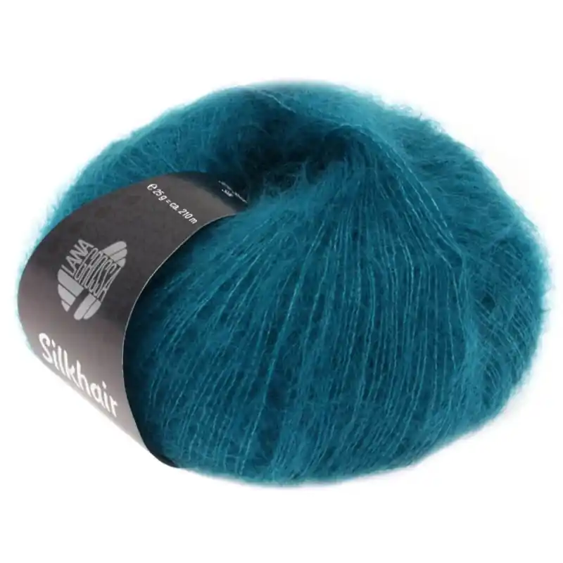 Silkhair di Lana Grossa è un filato molto morbido e piacevole a contatto con la pelle. Composto da un misto di mohair superkid e seta, due materiali caratterizzati dal suo calore, morbidezza e gran qualità. Il suo filo sottile presenta peli lungo tutta la lunghezza del gomitolo, apportando un tocco dolce e soffice.