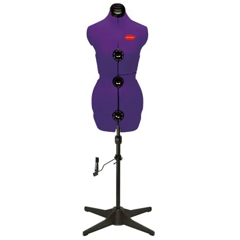 Manichino da cucito Prymadonna taglia S (36 – 42). Questo manichino è modulare in 8 parti con cuscino a spillo integrato a livello del collo, piede stabile in plastica e arrotondatore gonna con fissaggio a spillo.
